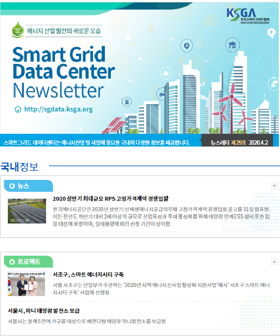 저희 본부에서 운영하는 스마트그리드 데이터 센터*에서는 격주로 뉴스레터를 발행하여
