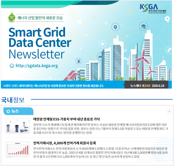 저희 본부에서 운영하는 스마트그리드 데이터 센터*에서는 격주로 뉴스레터를 발행하여