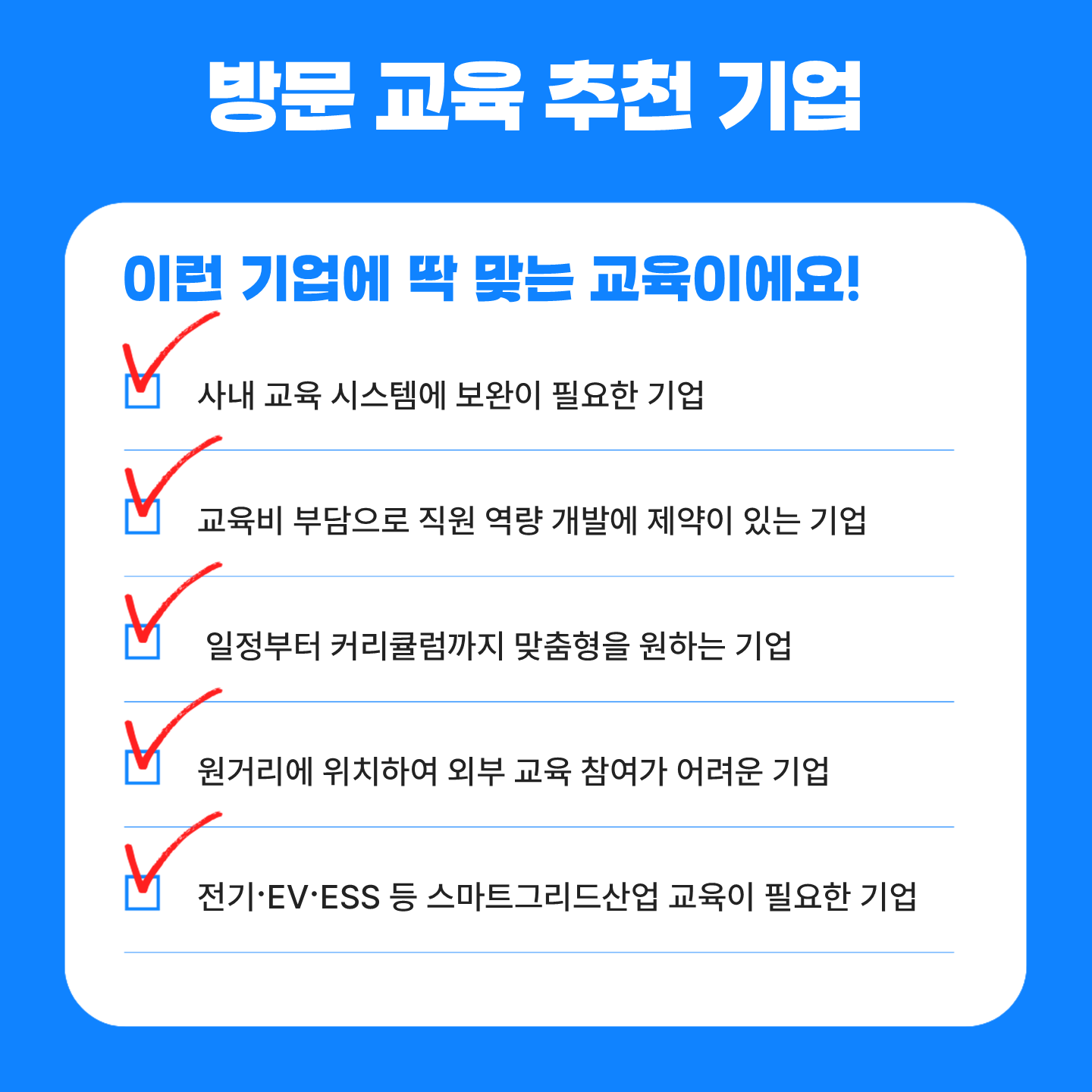 (안내) 2026년도 방문 교육 운영 안내 작성자 관리자 2026-04-07 첨부파일 붙임_방문교육 참가신청서_2026.hwp (194.0K) 이전글(안내) 교육 신청 시 고용보험료 체납 여부 및 훈련비 한도 확인 안내 목록 미리보기 미리보기 파일을 불러오는 중입니다. 로딩이 오래걸리면 미리보기를 다시 눌러주세요.
