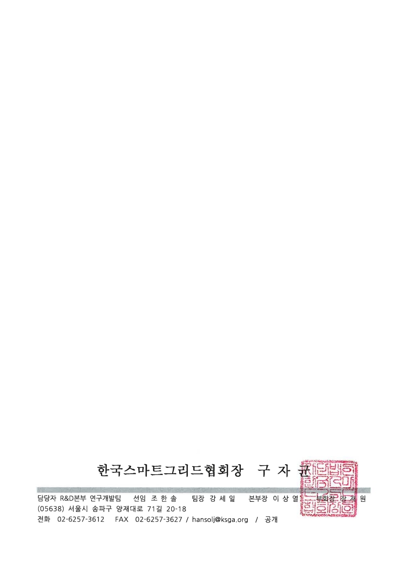 제32차 한국스마트그리드협회 표준 제정 결과 5종 안내 작성자 관리자 2025-12-03 첨부파일 첨부파일이 존재하지 않습니다. 이전글 [서울특별시] 2026년 서울특별시 전기버스 급속충전시설 보급 및 설치관리 운영을 위한 사업자 선정 공고 다음글 [고용노동부] 2026 임금체계 개편 컨설팅 수요조사(전기/전자 제조업 분야) 목록 미리보기 미리보기 파일을 불러오는 중입니다. 로딩이 오래걸리면 미리보기를 다시 눌러주세요.