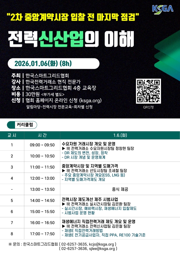 [SG협회] 전력신산업의 이해('26.1.6.) 교육안내 작성자 관리자 2025-12-18 첨부파일 첨부파일이 존재하지 않습니다. 이전글 2025 제2차 한국스마트그리드협회 표준 공청회 개최 안내(‘25.10.14) 다음글 제12차 차세대전력망포럼 개최 안내 목록 미리보기 미리보기 파일을 불러오는 중입니다. 로딩이 오래걸리면 미리보기를 다시 눌러주세요.